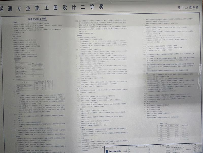 上圖為暖通專業(yè)二等獎獲得者 魏領(lǐng)帥 參選施工圖