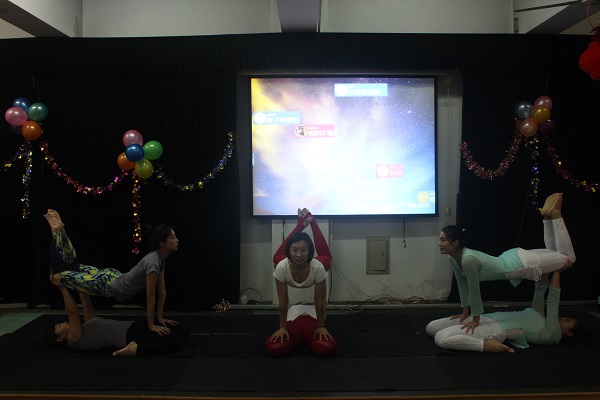 張琦、勾春嬌、80后理療瑜伽館老師表演《雙人瑜伽舞蹈》